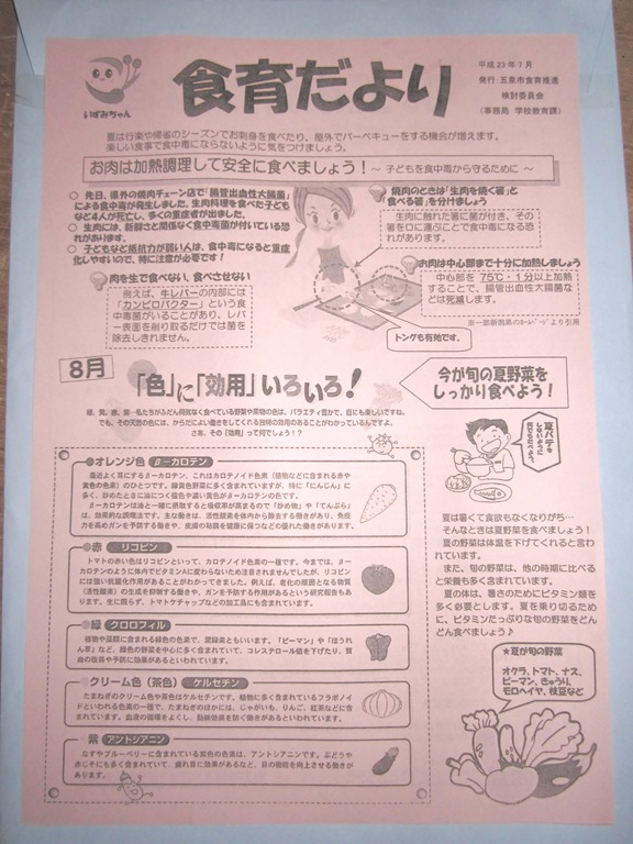 地産地消や、旬の野菜の効用、旬の五泉野菜を使った健康メニューなどを、随時提案、チラシとして配布しています。
