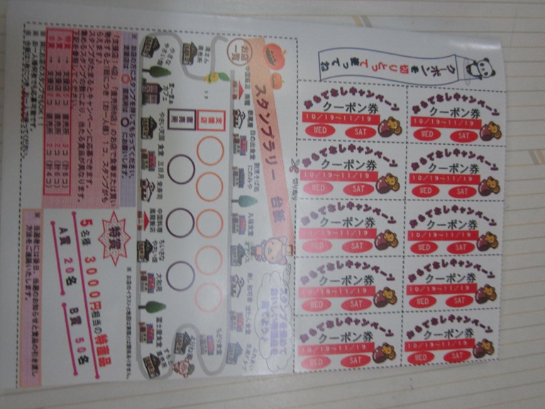 市内のお客様であれば、一か月という長丁場、いくらでもスタンプを集めることが出来るのではないでしょうか。また、市外のお客様でも、一カ月あることですし、スタンプラリーが完成するのでは。
