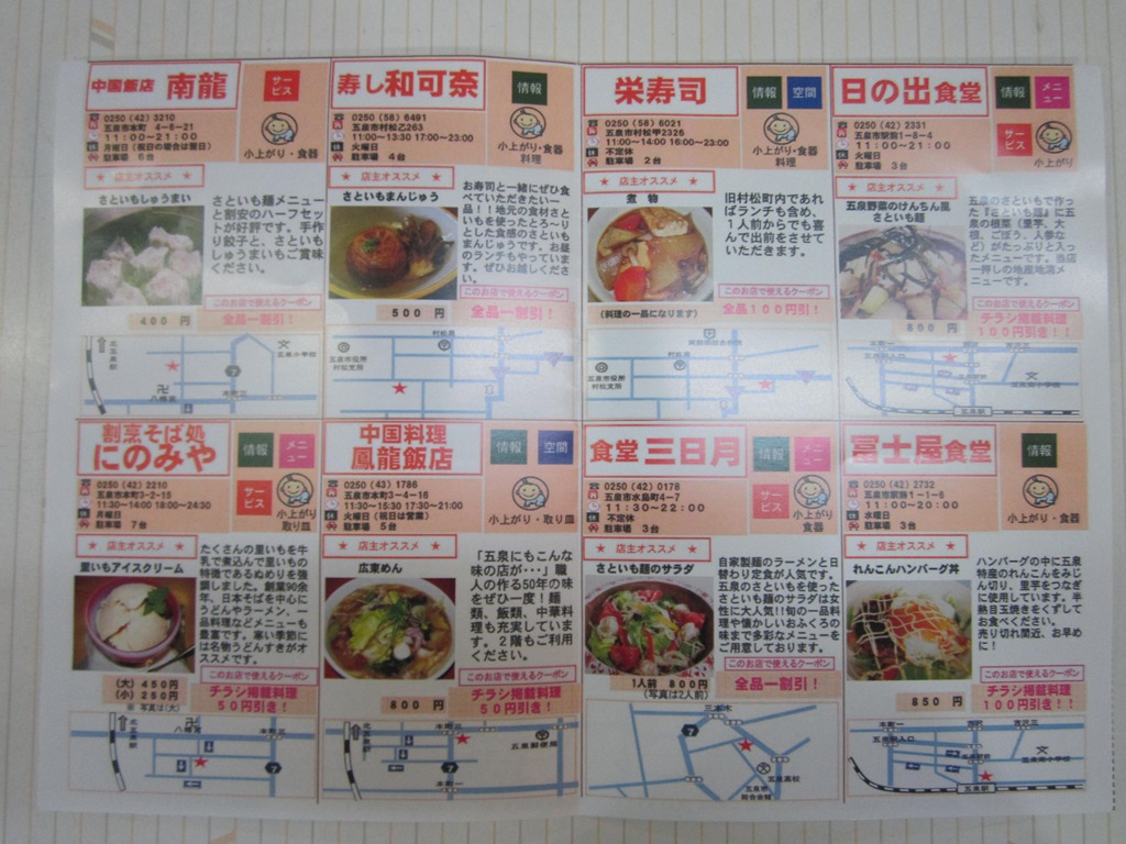 五泉市には現在42店あり、この度、その店舗の中から五泉食堂組合を中心に、当店を含め14店の飲食店と、五泉の野菜直売所8軒を廻っての、スタンプラリー企画です。