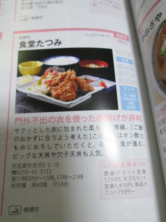 当店くくりとしては食堂の部で、五泉からは当店とたつみ食堂、そしてぼたん食堂の3店が掲載されています。