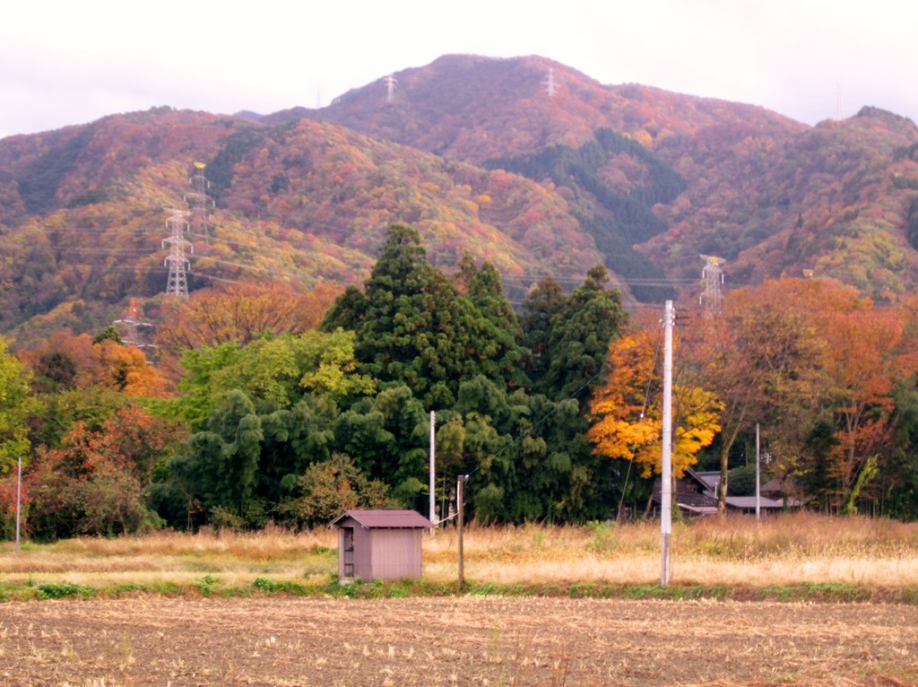五泉近郊の山や丘、とてもいい紅葉ですので、雨が続く昨今の天気は悔やまれます。