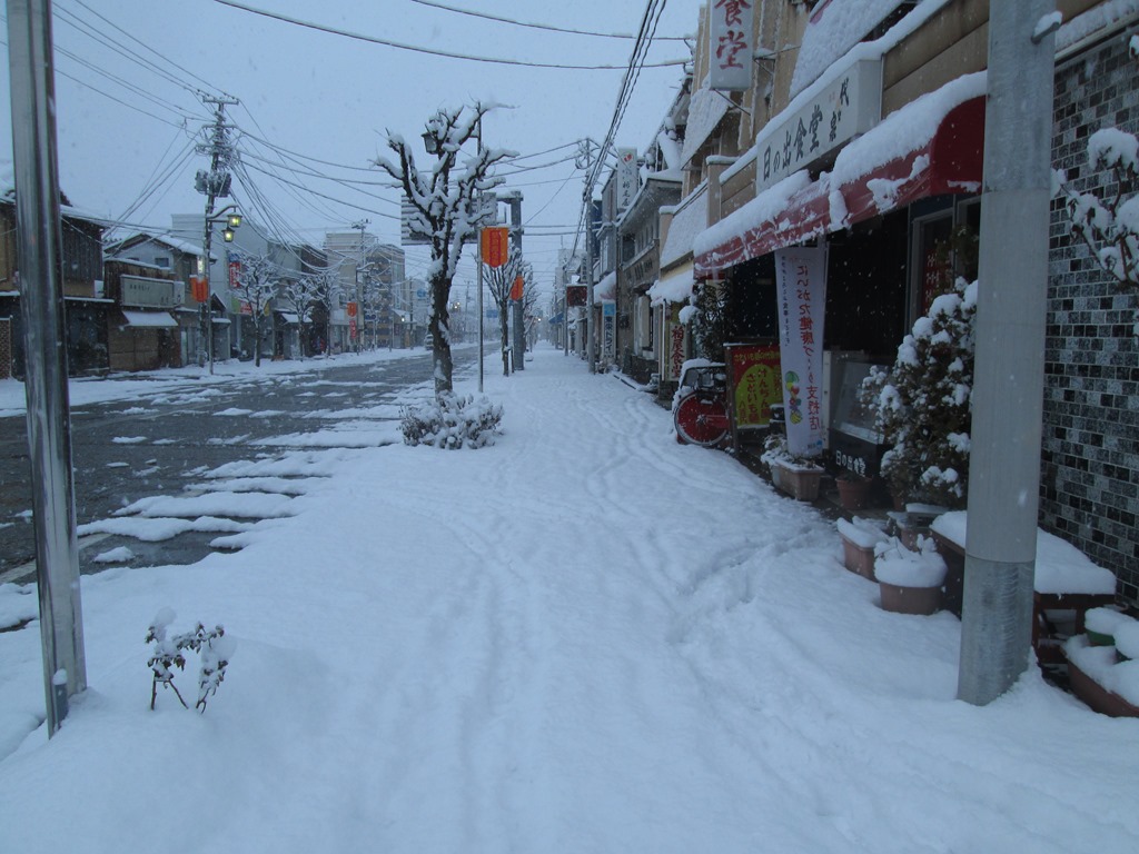 現地古町7番町に着いた時には雪もなく、アーケードのなかお客様も待つ準備をしながら待機。
