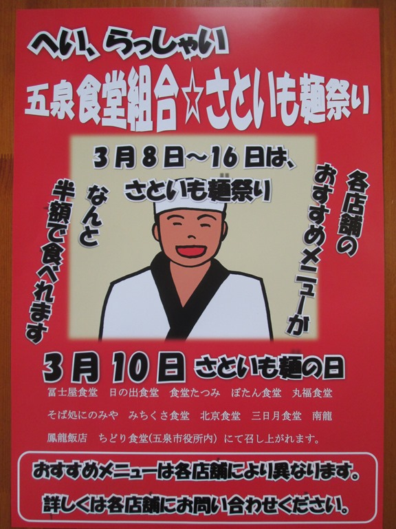 期間は3月8日から16日までの9日間、もちろん3月10日の「さといも麺の日」を含んでいます。