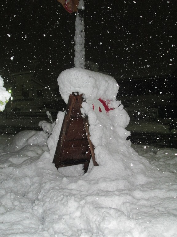 13日土曜日、夕方からの雪で夜の8時を過ぎる頃には驚くほどの積雪。
