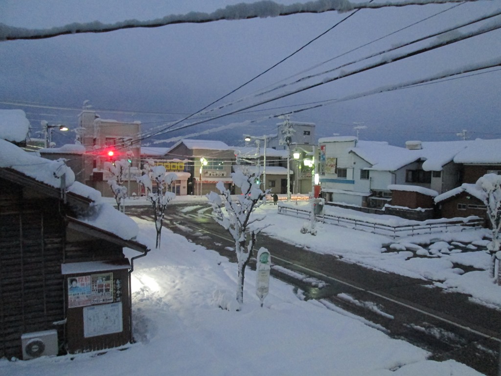 前回のブログには土曜日朝の当店周辺の模様を写しておりましたが、日が暮れるとやはり寒波がやってまいりました。