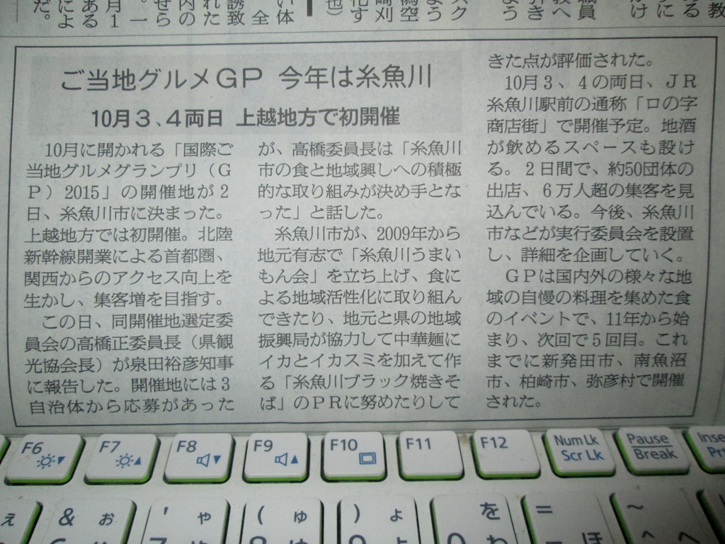 2日、今年の10月3・4日に開催される「国際ご当地グルメグランプリ」の開催地が糸魚川に決定されました。