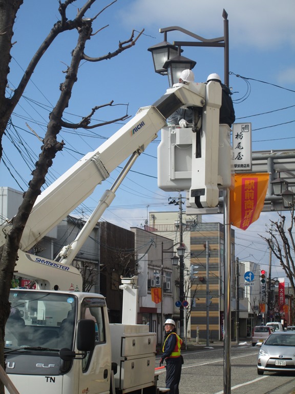 というわけで、少しでも明るい通りにしようと街灯をLED電球に変えました。