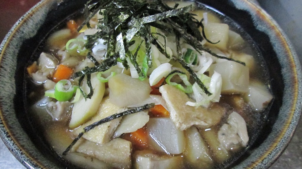 鰹だしの和風な味付けと五泉産の里芋などの根菜がタップリと入った人気メニューですが、里芋が旬の季節はすでに去り、次に提供できるのはまた秋からとなります。