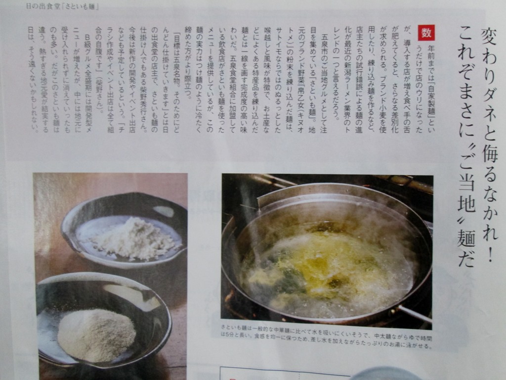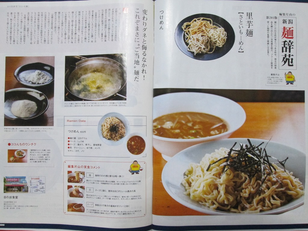 新潟を代表する情報誌WEEK!7.1号の人気コーナー「編集片山の新潟麺辞苑」に「さといも麺」と当店のつけ麺が紹介されています。