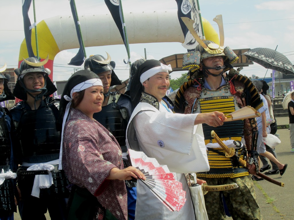 武者行列は公募され、甲冑を付けた武者装束で参加できるとあって人気で、この日のために「鼻髭を半年かけて整えた」という中年の方がお買い求めた際に教えてくれました。