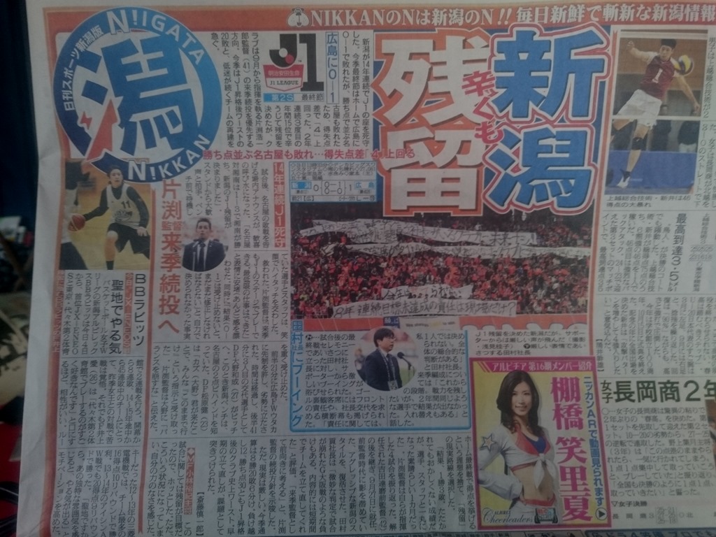 昨日、サッカーJ1新潟アルビレックス最終戦!!