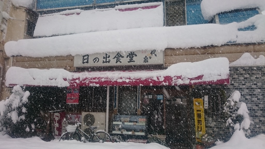 昨日から降り続く雪で、今朝は膝上までの降雪。