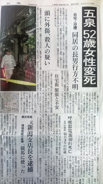 紙面の半分ほどに五泉市の変死事件が載っておりました。